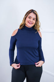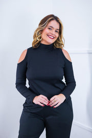 Cada detalhe desta blusa é uma declaração de estilo, dos recortes estratégicos nos ombros à textura envolvente da malha canelada, proporcionando não apenas um visual sofisticado, mas também uma sensação de conforto incomparável.
