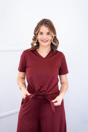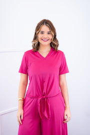 Blusa Elisa – Decote V com Amarração na Frente em Malha Confort ✨🌿