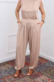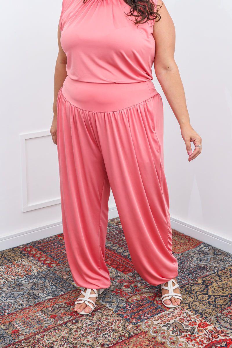 A modelagem estilo aladim , com pernas largas e caimento solto, cria um visual elegante e descomplicado — perfeita para composições casuais, urbanas ou mais refinadas, dependendo da combinação.