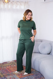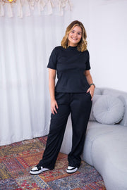 Apresentamos o Conjunto Elizabeth - uma união perfeita entre estilo e conforto! Imagine uma calça pantalona feita de malha canelada que envolve o corpo de forma suave, sem revelar nenhum detalhe indesejado. É isso que você terá com o nosso conjunto!