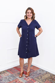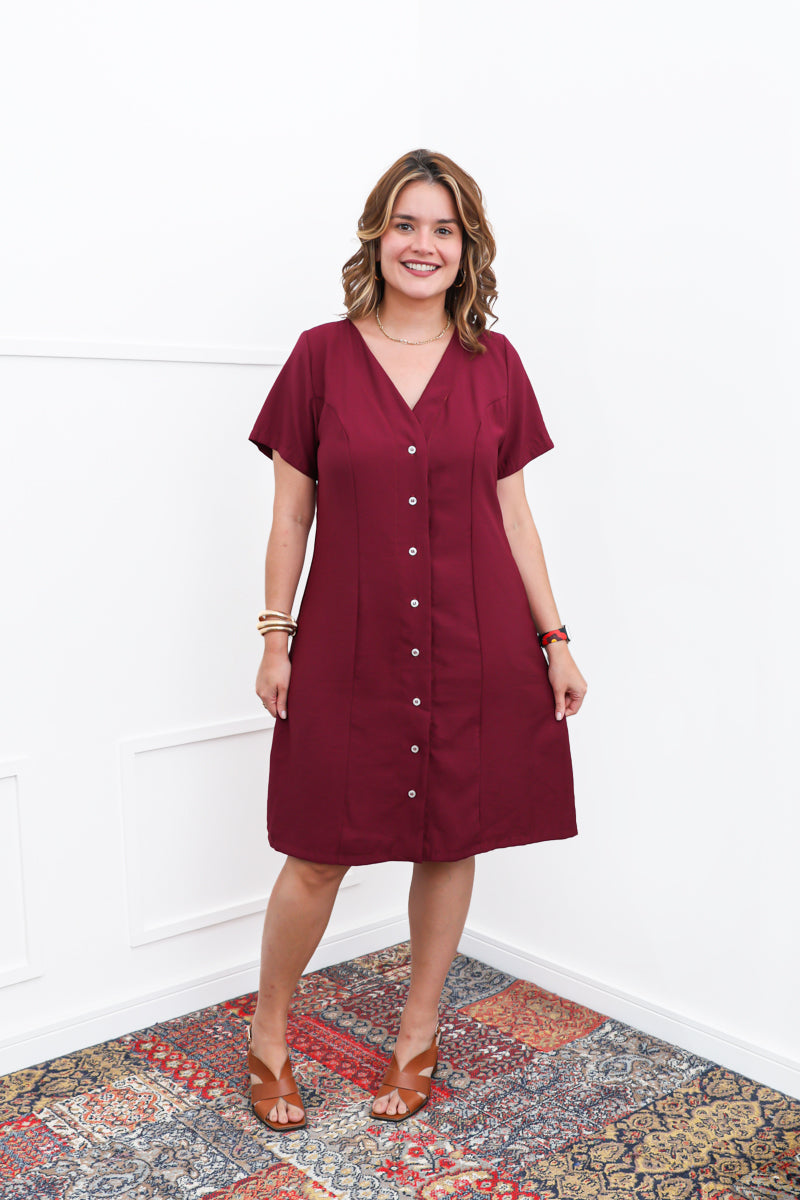 A gola em V alonga a silhueta e valoriza o colo, enquanto os botões frontais funcionais trazem um toque clássico e moderno ao mesmo tempo. As mangas curtas oferecem mais cobertura com leveza, mantendo o frescor da peça.