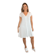 O decote V valoriza a feminilidade de forma discreta e refinada, acrescentando um toque de sofisticação à peça. Versátil e confortável, este vestido é perfeito para momentos que pedem um visual cativante sem abrir a mão do bem-estar.