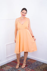 Vestido Midi Malu – Alça Ajustável em Viscose Marrant com Saia Evasê
