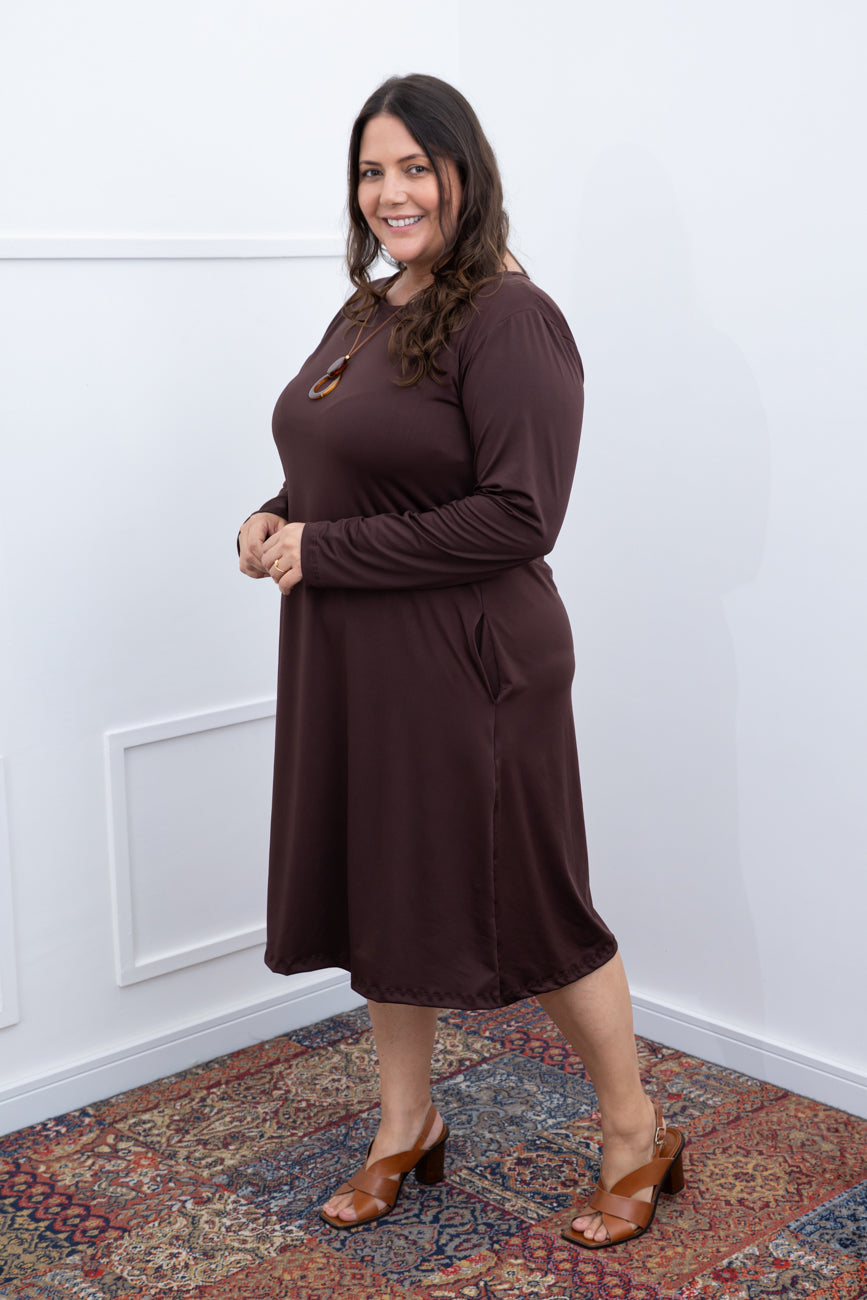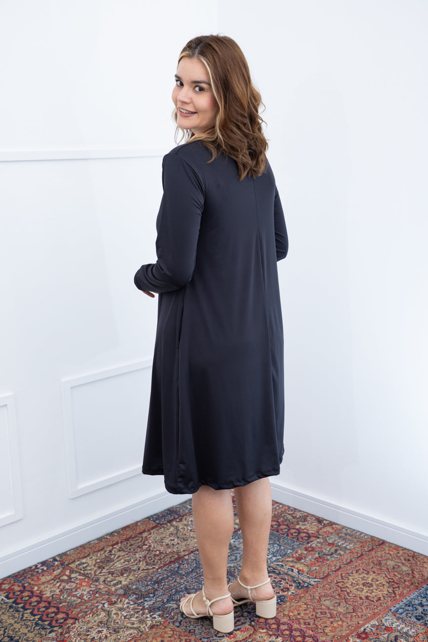 O Vestido Sofia Manga Longa é a escolha perfeita para quem busca conforto aliado a um visual elegante e versátil