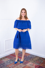Vestido Nathalia – Midi em Laise Premium com Decote Ombro a Ombro